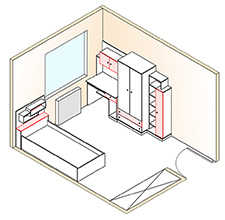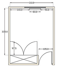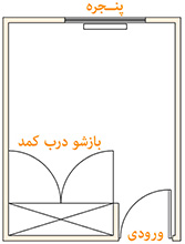 ۳ - باز شو درب ورودی و کمد دیواری اتاق را در نظر بگیرید.